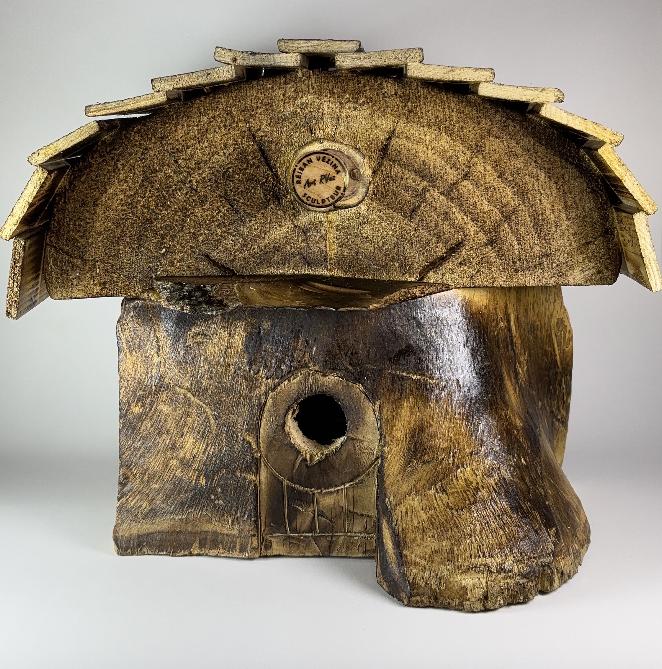 Cabane d’oiseau en cèdre, mesurant 12 pouces de haut, avec un volume intérieur d’environ 100 pouces cube et un trou d’entrée de 9,5 pouces pour les petits oiseaux.