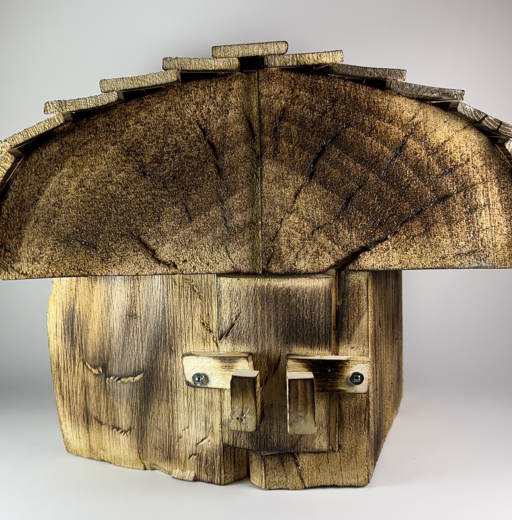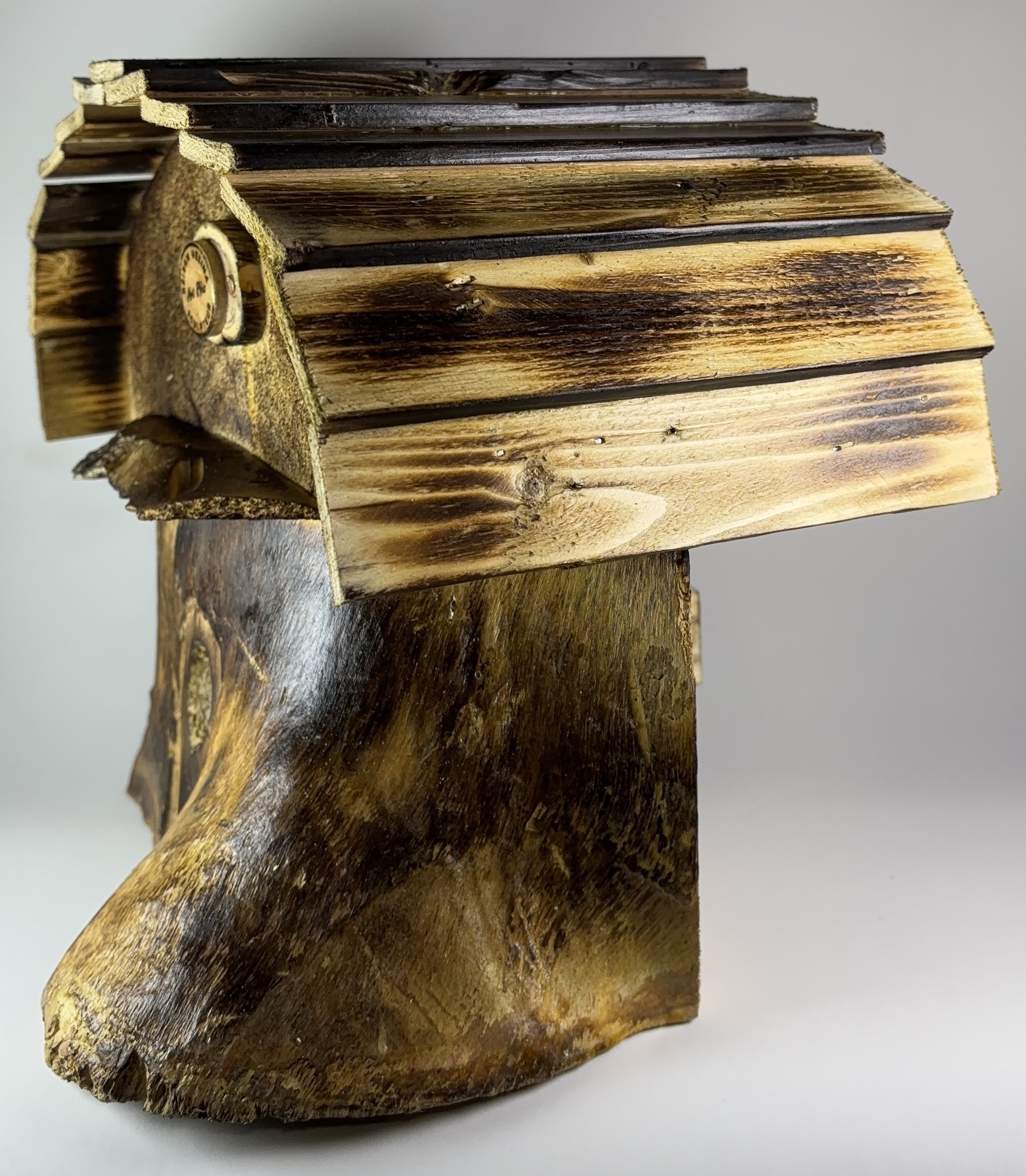 Bois brûlé et verni.