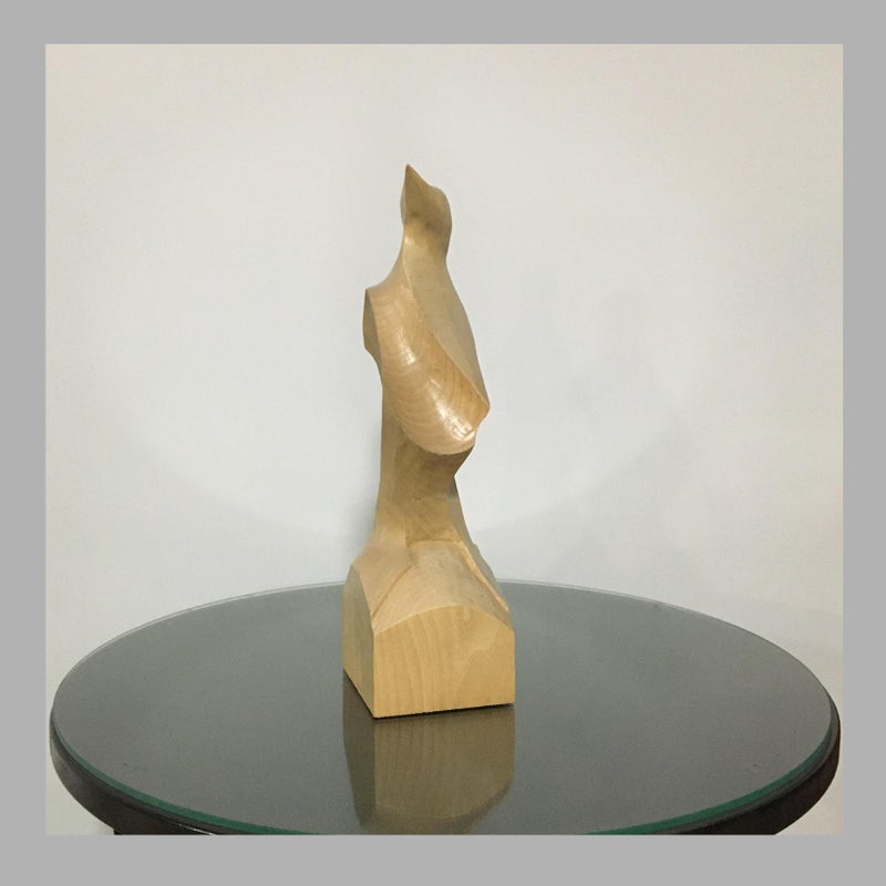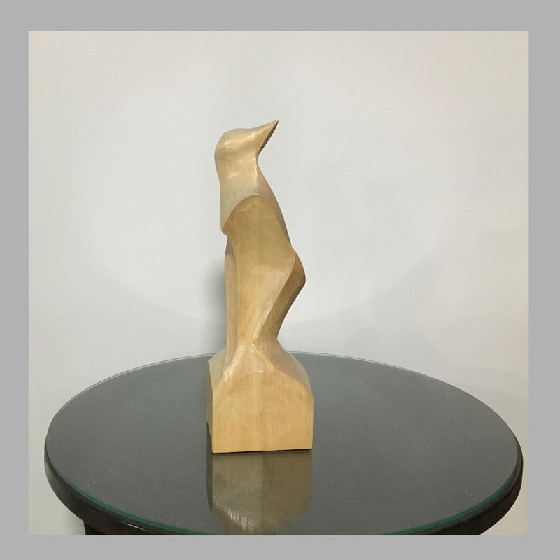 Sculpture de pingouin en merisier 12 x 3 x 3 1/2 pouces, bois naturel et vernis.